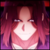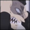 Description: a white guy with white hair, three red eyes, and a red dragon snout